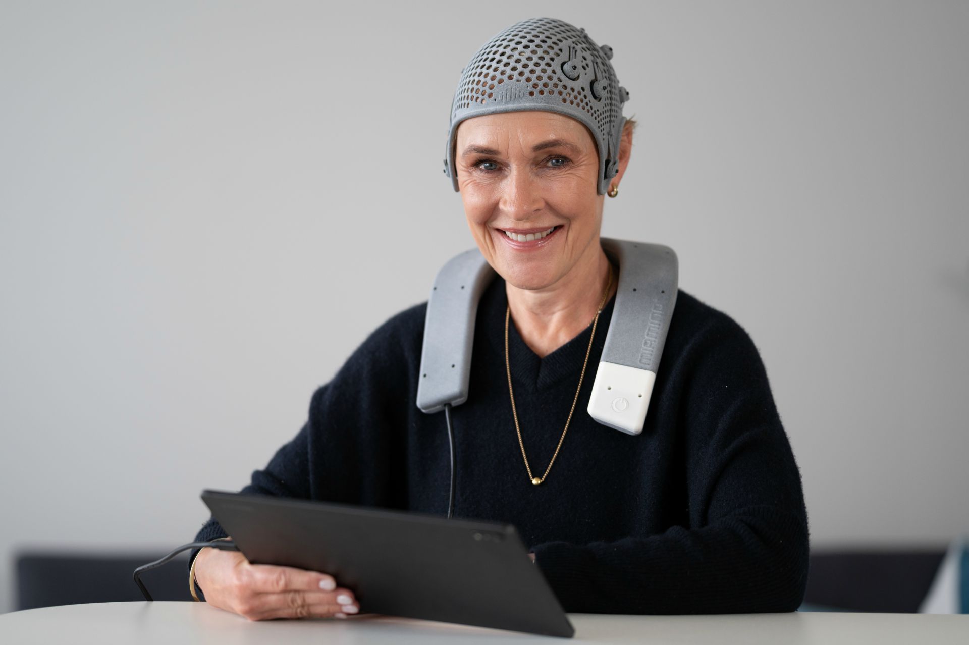 Als Schweizer Neuentwicklung hat das noch junge Basler Neurologie-Start-Up Bottneuro, ein Spin-Off der Universität Basel, den weltweit ersten vollständig personalisierten Neurostimulator zur Heimanwendung entwickelt. Der Miamind® Neurostimulator ist ein Durchbruch in der personalisierten Neurostimulation, da er basierend auf individuellen MRT-Scans massgeschneiderte 3D-gedruckte Neurostimulator-Caps mit bis zu 34 präzise platzierten Elektroden bietet.