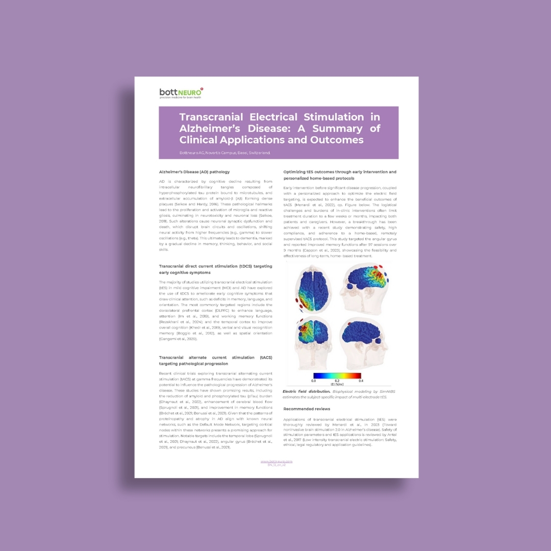 - Bréchet, L. et al. Patient-Tailored, Home-Based Non-invasive Brain Stimulation for Memory Deficits in Dementia Due to Alzheimer’s Disease. Front. Neurol. 12, (2021).
